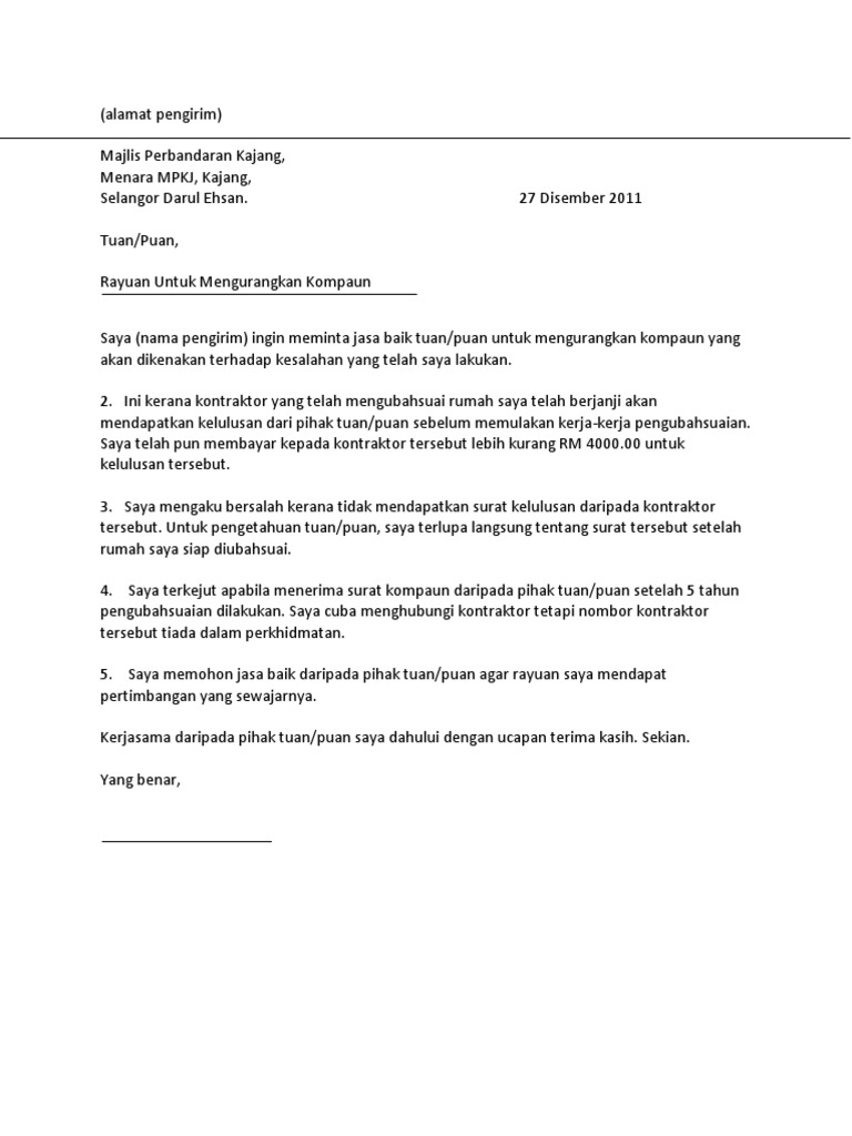 Surat rasmi rayuan pengurangan kompaun rasmi ri. Contoh Surat Rayuan Pengurangan Kompaun Majlis Perbandaran Surat Rayuan Saman Sample Dan Format Eratuku cakrabuanacager72. Portal rasmi majlis perbandaran kajang mpkj.